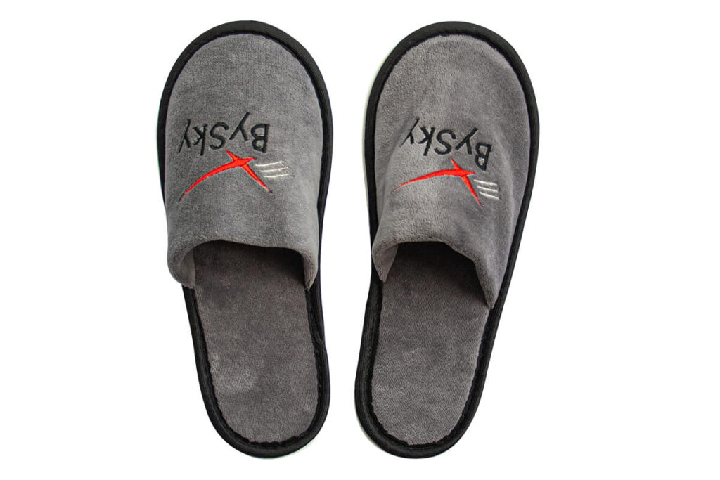 Наша компания занимается изготовлением одноразовых тапочек с индивидуальным брендированием. Мы наносим логотипы клиентов различными способами, включая трафаретную печать, DTF-печать, пластизоль, пришивание текстильной ленты и вышивку. Помимо этого, мы разрабатываем и производим фирменную упаковку для тапочек типа «шубер».